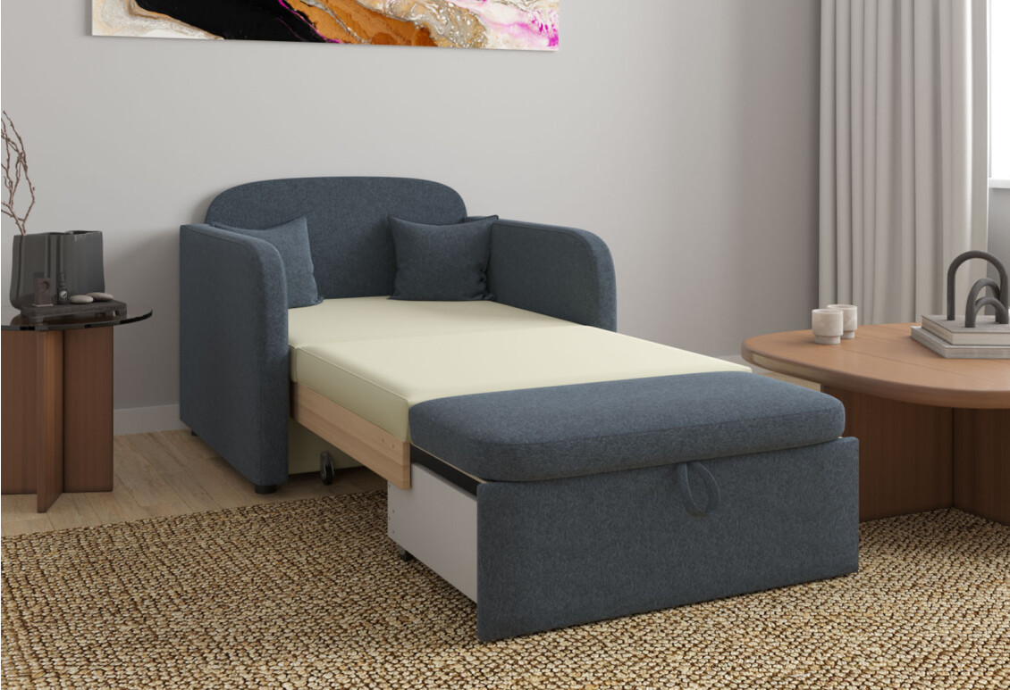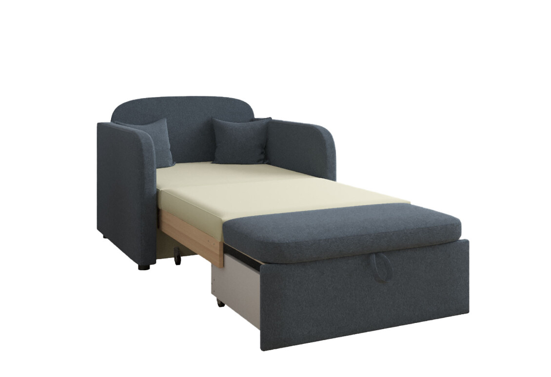 Механизм трансформации выкатной (телескоп) - задействуется с помощью нескольких простых движений: стоит потянуть сиденье на себя, взявшись за ручку под ним, а потом перебросить матрас с сиденья на свободное место. Таким образом создается ровное спальное место с ортопедическим эффектом.