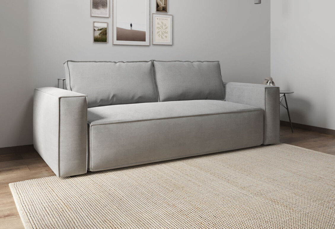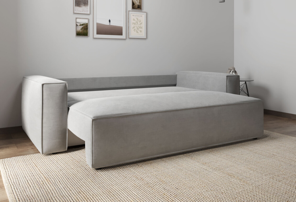 Механизм трансформации еврокнижка - один из самых популярных и более надежных. Трансформация механизма осуществляется за счет выведения сиденья на себя (выкатной или шаговый способ), вследствии чего освобождается место из вместительной нишей из-под сиденья. Тогда легко опускается спинка дивана и создается ровное спальное место.