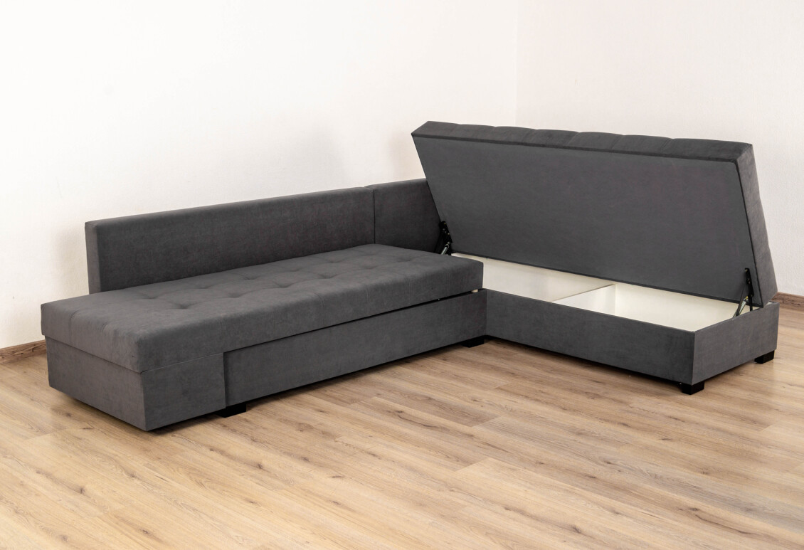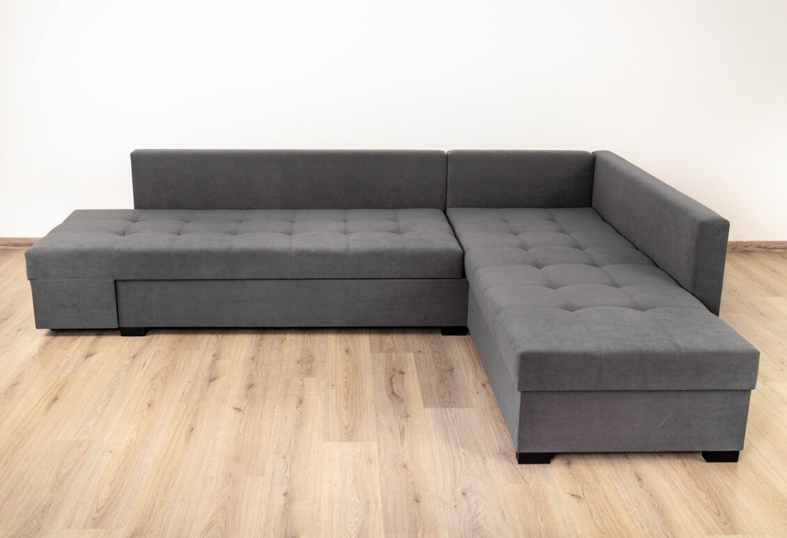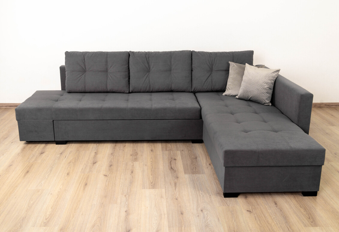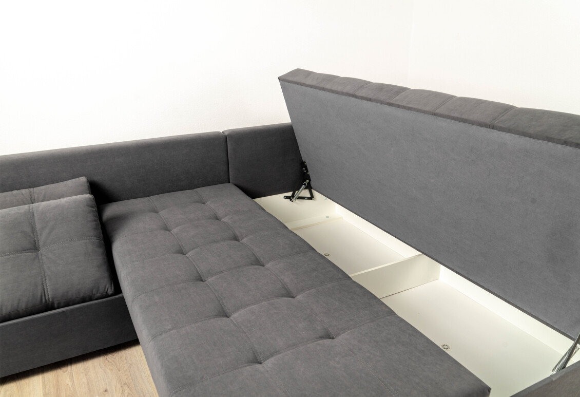 Механизм трансформации поворотный — с легкостью трансформирует угловой диван в двуспальную кровать или две односпальные.