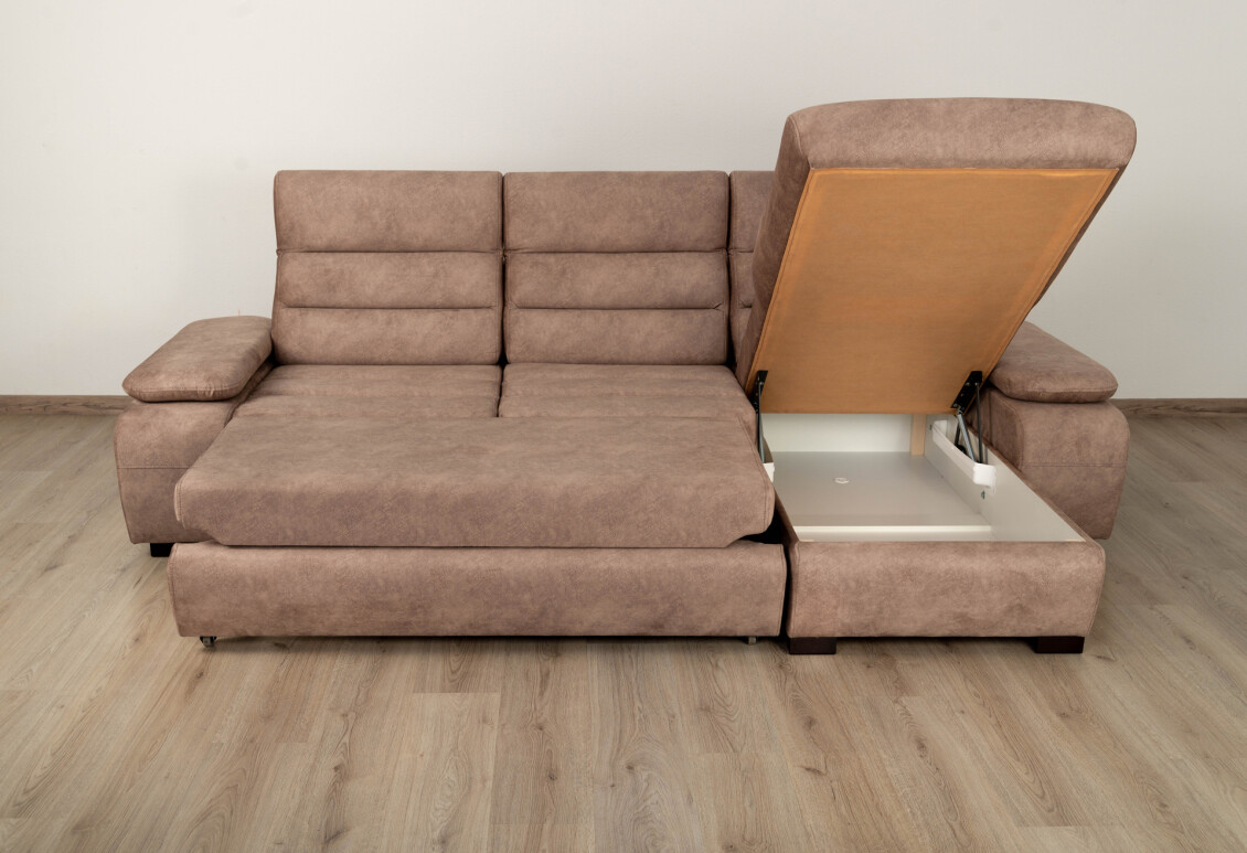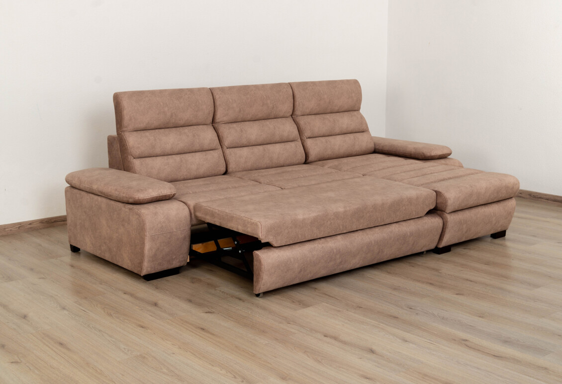 Под сиденьем дивана содержится платформа на шарнирах, которая прикреплена к раме. Для трансформации такого механизма необходимо потянуть за ручку, которая находится под сиденьем, в результате чего выедет платформа с дополнительным спальным местом. Тогда, с помощью этой ручки, стоит приподнять спальное место вверх (в этом поможет встроенный газ-лифт) и установить в устойчивое положение.