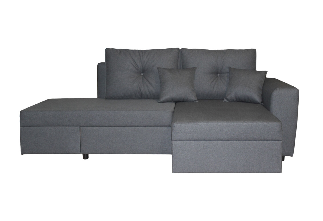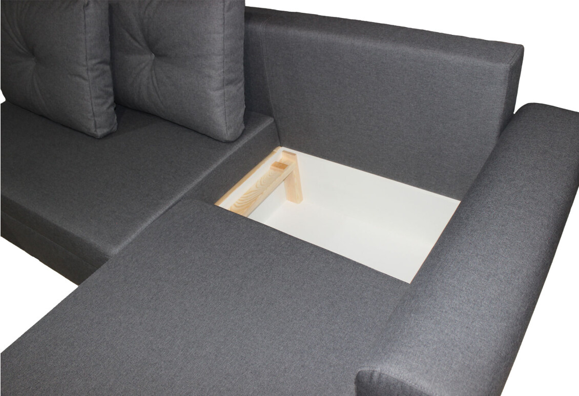 Прямой сегмент поворачивается на 90 °, а угловая кушетка выдвигается вперед. На место, которое образовалось, кладется спинка - спальное место готово.