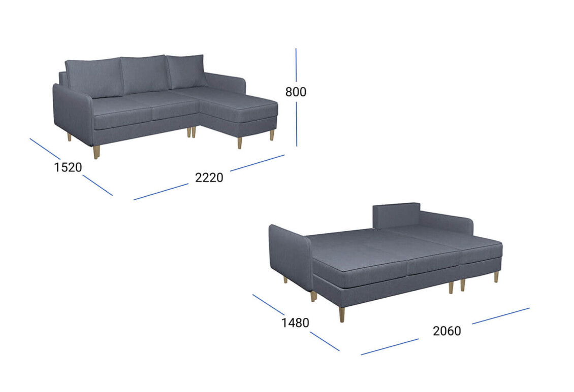 - Спальный размер дивана: 150х200 см (+/- 5 см)