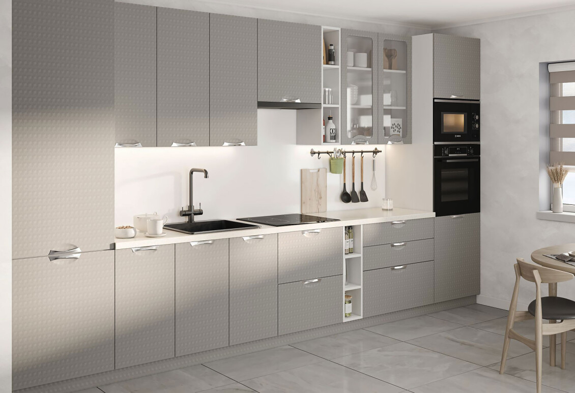 Модульная кухня Адель Люкс – это часть обширной модульной системы, которая включает в себя 147 товаров различных категорий. Вы сможете подобрать не только нижние кухонные тумбы, но и верхние кухонные тумбы, пеналы и фасады. Это создает возможность для создания индивидуального пространства, полностью соответствующего вашим потребностям и предпочтениям. Модульная система позволяет легко комбинировать различные элементы, обеспечивая максимальную функциональность и удобство в использовании.