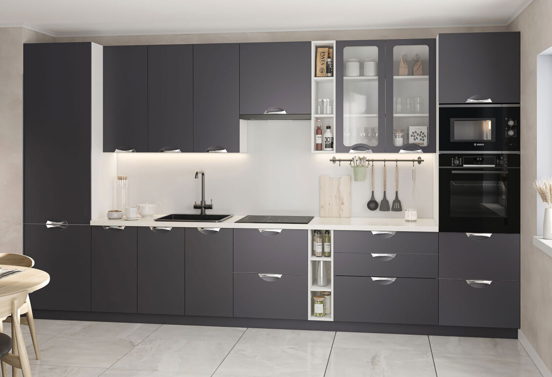 Кухня доступна в различных модификациях, что дает возможность выбрать идеальный вариант для вашего дома. Вы можете выбрать цвет корпуса из следующих вариантов: дуб сонома, графит, дуб крафт золотой, пепельный и белый. Фасады же представлены в богатом ассортименте: от белого глянца до насыщенного бургунди, а также множество других цветовых решений, таких как дуб трюфель, графит, светлый какао и даже экзотические оттенки, например, сапфир восточный и черная галактика. Такой выбор позволит вам легко адаптировать кухню под ваш индивидуальный стиль.