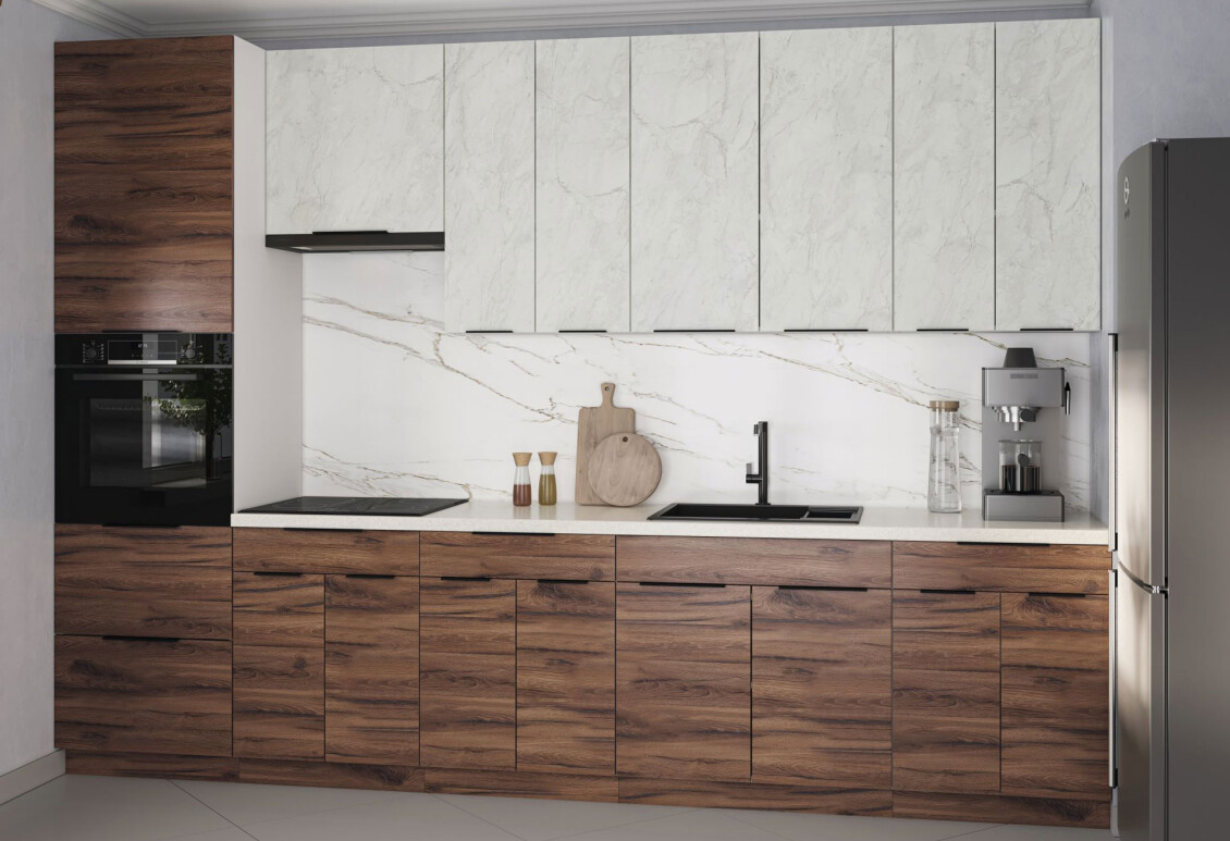 Модульная кухня Алиса от производителя Svit Mebliv — это идеальное решение для тех, кто ценит современный стиль и функциональность. Эта кухня выполнена из качественной плиты, что обеспечивает ей долговечность и надежность в эксплуатации. Стиль модерн делает кухню не только практичной, но и эстетически привлекательной, что позволит ей гармонично вписаться в любой интерьер. Алиса предлагает разнообразие в выборе цветов: вы можете выбрать корпус в таких вариантах, как дуб сонома, графит, дуб крафт золотой, пепельный и белый. Фасады также радуют своим многообразием: артвуд светлый, кашемир, дуб белый, бетон стайл, тоффи, оливка и дуб ливорно. Такой широкий выбор позволит вам создать уникальное пространство, отражающее ваш индивидуальный стиль.