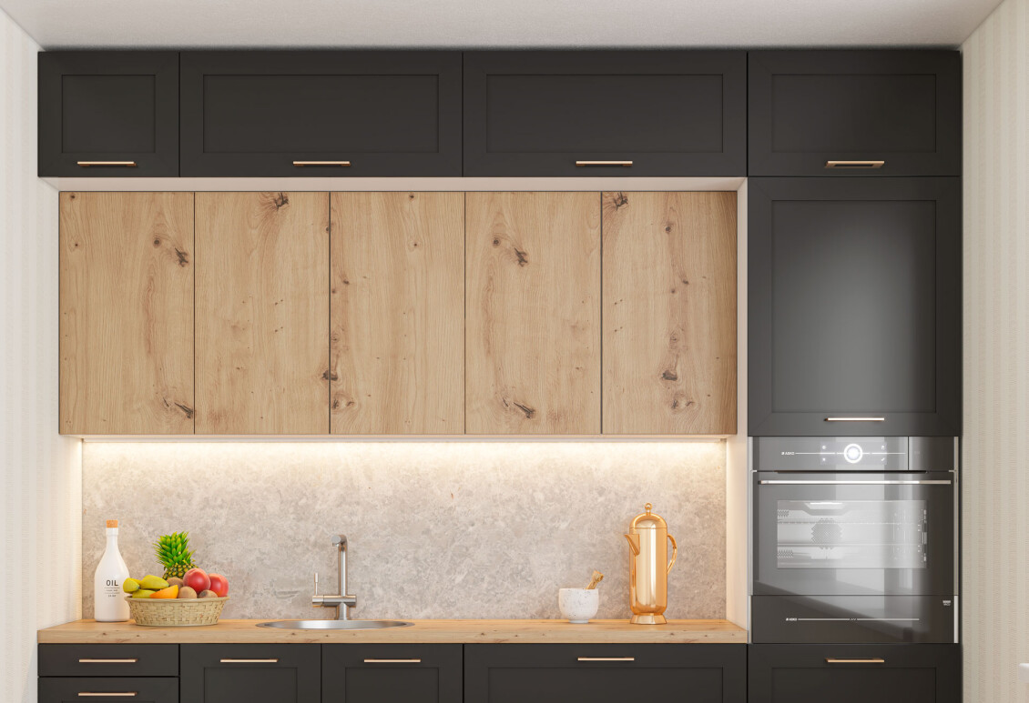 Кухня представлена в различных цветах, что позволяет легко адаптировать её под ваш стиль и предпочтения. Доступные цвета корпуса включают дуб сонома, графит, дуб крафт золотой, пепельный и белый. Фасады также имеют широкий выбор: белый, дуб крафт золотой, морское дерево винтажное и артвуд светлый, а для фасадов из МДФ доступны такие цвета, как арабика, элегантный серый софт, инжир, лаванда софт, каталонский желтый, светло-серый софттач, мята супермат и многие другие. Это позволяет создать гармоничное сочетание и подчеркнуть индивидуальность вашего пространства.