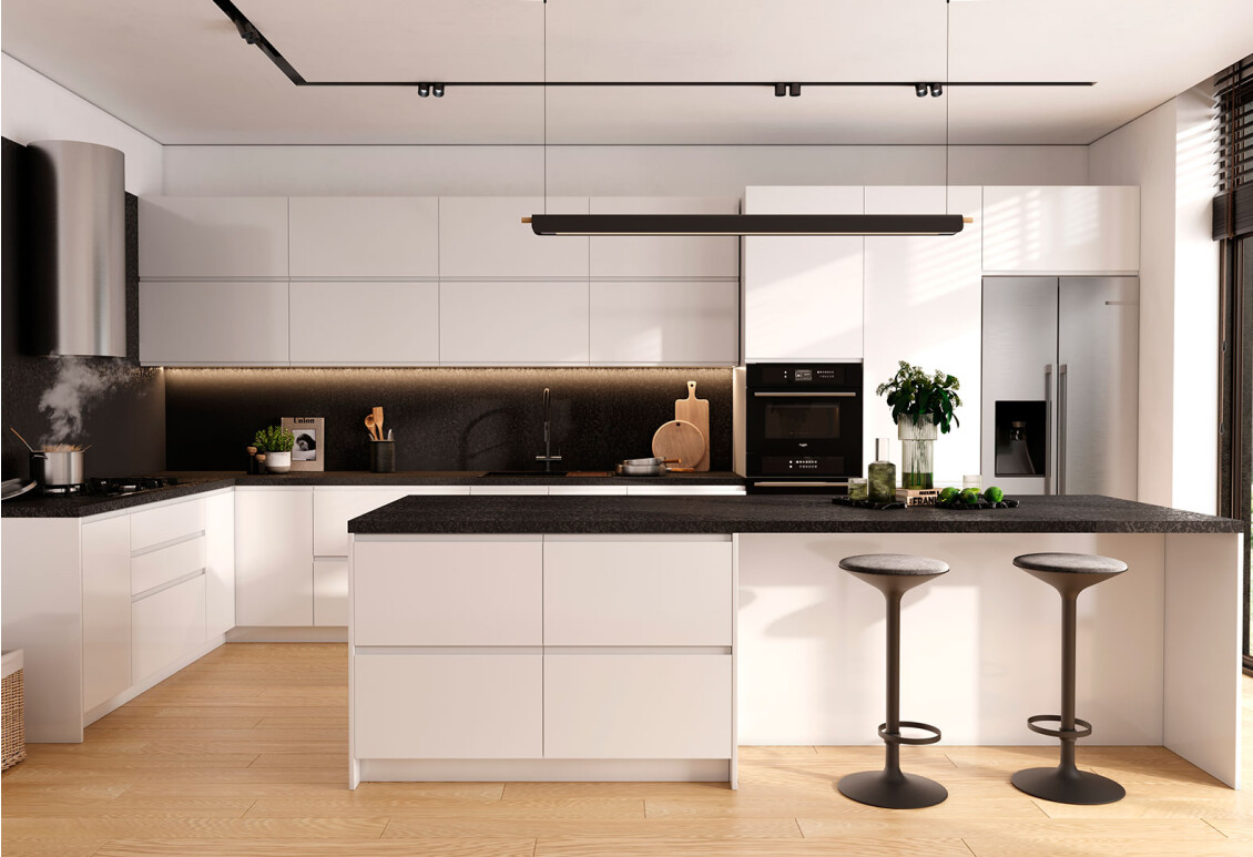 Модульная кухня Миллениум от производителя MiroMark – это идеальное решение для тех, кто ценит современный стиль и функциональность в интерьере. Эта кухня выполнена из качественных материалов, таких как плита и ДСП, что обеспечивает её долговечность и надежность. Фасады из крашеной МДФ не только выглядят стильно, но и легко очищаются, что делает их практичными в повседневной эксплуатации. Кухня доступна в различных цветовых вариантах, включая белый, антрацит и дуб крафт для корпуса, а фасады представлены в глянцевом белом цвете. Это позволяет легко интегрировать кухню в любой интерьер, подбирая цветовые решения, которые гармонично впишутся в вашу кухню.