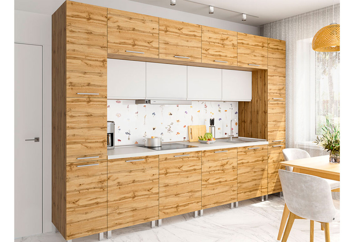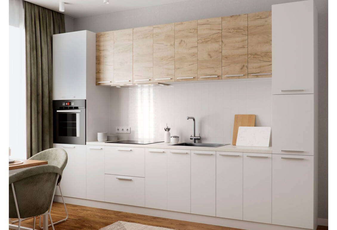 Модульная кухня Родос Люкс от производителя VIP-master — это идеальное решение для тех, кто ценит сочетание качества, функциональности и современного стиля. Эта кухня выполнена в стиле модерн и изготовлена из высококачественных материалов, что гарантирует её долговечность и надежность. Корпус кухни изготовлен из ламинированной ДСП, что обеспечивает защиту от повреждений и легкость в уходе. Фасады также выполнены из ДСП, что придаёт кухне современный вид и делает её универсальной для любого интерьера. Кухня доступна в различных цветовых решениях, что позволяет легко подобрать идеальный вариант для вашего дома. Вы можете выбрать цвет корпуса из таких вариантов, как венге, дуб молочный, серый, слоновая кость, антрацит, кашемир, чёрный, дуб аппалачи, бетон, сосна натти, бетон тёмный, нимфея альба и белый. Фасады также представлены в широкой палитре: белый, дуб крафт белый, антрацит, северное дерево светлое, дуб аппалачи, северное дерево темное, дуб крафт серый, бетон тефра, бетон тёмный, дуб якибан и липа песочная. Благодаря такому разнообразию, вы сможете создать уникальную атмосферу на вашей кухне.