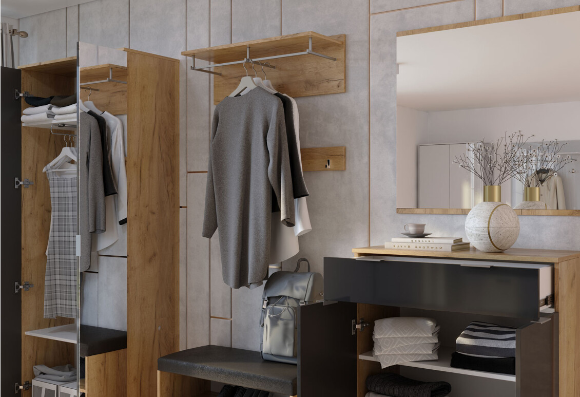 Модульная прихожая Луна является частью обширной модульной системы Луна от MiroMark, которая включает в себя более 120 элементов. Вы можете подобрать различные товары для создания гармоничного пространства, включая тумбы под TV, комоды, письменные столы, односпальные и двуспальные кровати, готовые шкафы-купе, туалетные столики, вешалки для одежды, обычные шкафы, пеналы, обувные тумбы, прикроватные тумбы для спальни, витрины, настенные полки шкафчики, кресла и пуфы, а также зеркала. Это позволяет вам легко адаптировать интерьер под ваши потребности и предпочтения, обеспечивая максимальную выгоду от покупки.