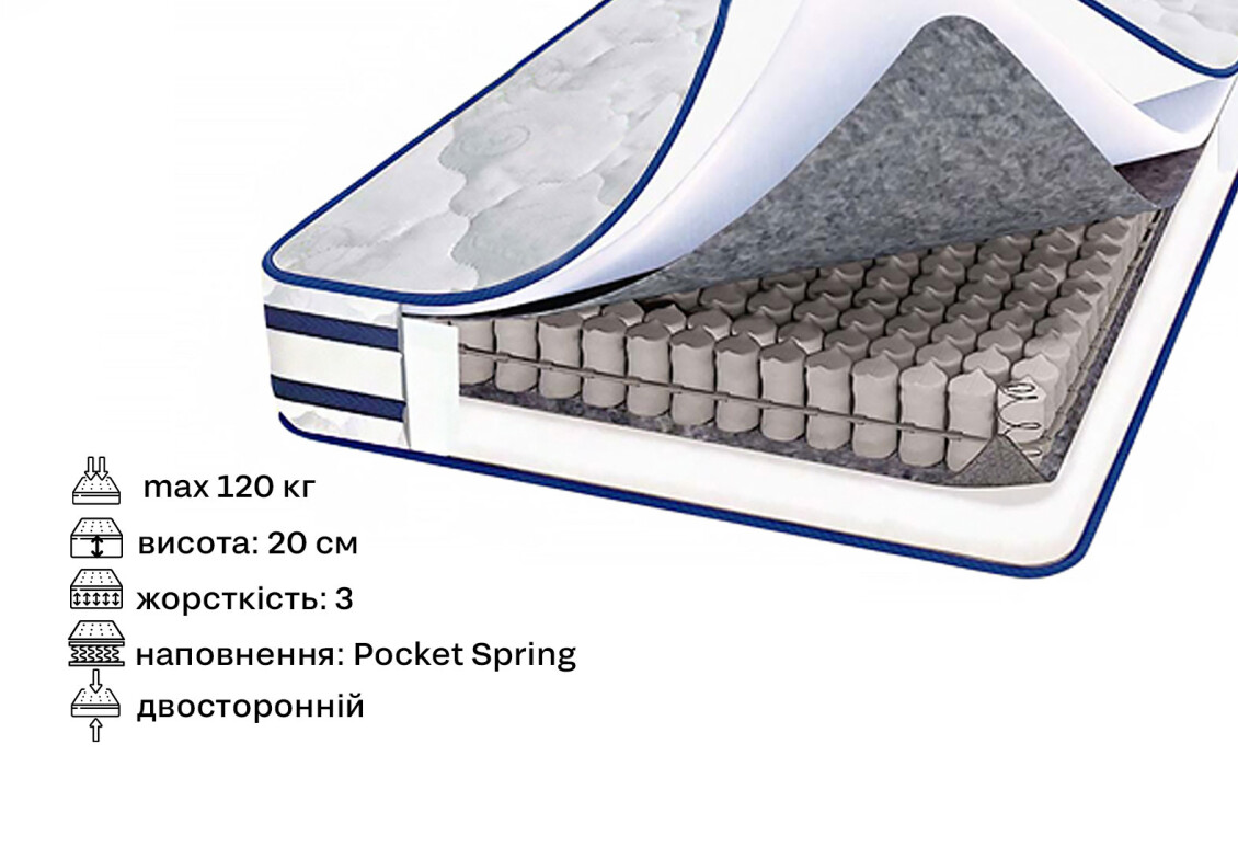 - наполнение матраса: ППУ, пружины pocket spring, термовойлок, синтепон