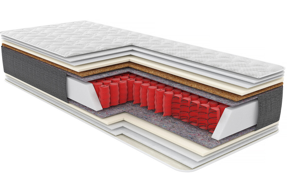 - наполнение матраса: кокос, пружины Pocket spring, Spring Foam, термовойлок, спанбонд, синтепон