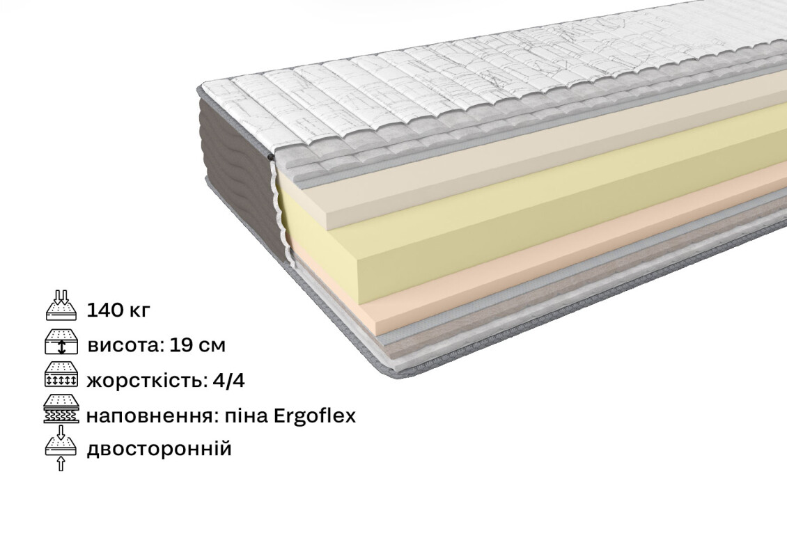 ЭММ — украинский производитель ортопедических матрасов. Фабрика ЭММ предлагает потребителям варианты матрасов и аксессуаров для сна различной ценовой политики, от эконом до премиум-класса. Фабрика сочетает отечественные мебельные традиции и современные технологии производства, именно благодаря этому она занимает лидирующие позиции в производстве матрасов в Украине. Для их изготовления фабрика использует только высококачественное сырье и материалы, а это обеспечивает безопасность и комфортный сон. На всех стадиях производства осуществляется контроль качества продукции, а именно: контроль мягкости, долговечности, усадки матраса, жесткости пружины и пружинного блока, контроль проволоки, стальной полосы, а также проверка пенополиуретановых материалов. Все лабораторные опыты проводятся на высокотехнологичном оборудовании с процентом допустить ошибку от 0,5 до 1%.- Высота : 19 см