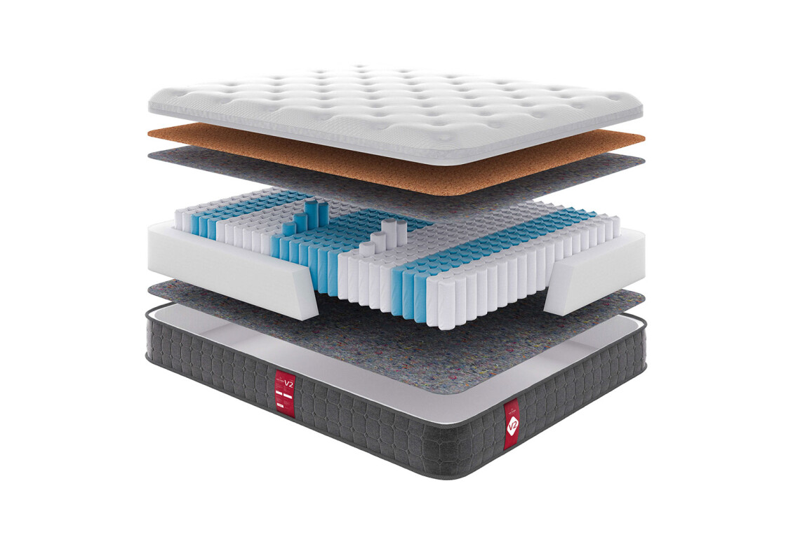 - Наполнение матраса: пружины Pocket Spring Sky 7, жесткий войлок, Mono Foam, спанбонд, синтепон, кокос – высококачественные материалы для максимального комфорта.