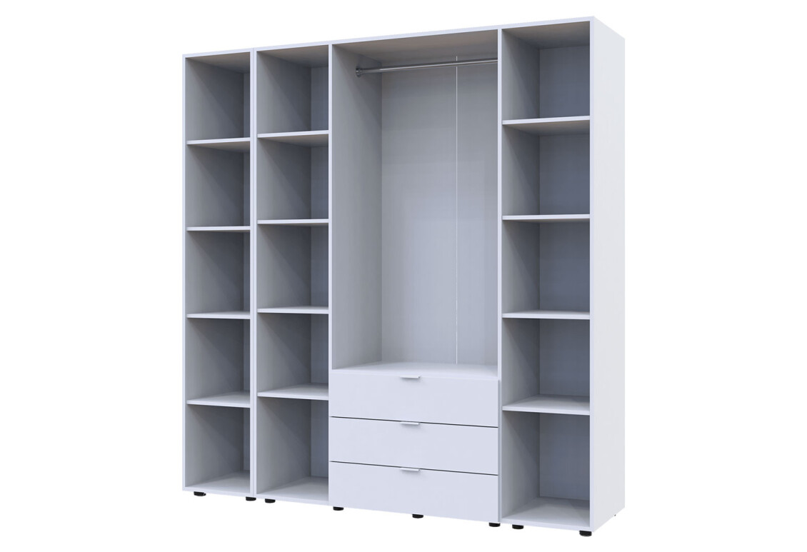Характеристики товара Шкаф Doros Гелар 4 ДСП 4-дверная с 3 ящиками и этажеркой 193 см Белый