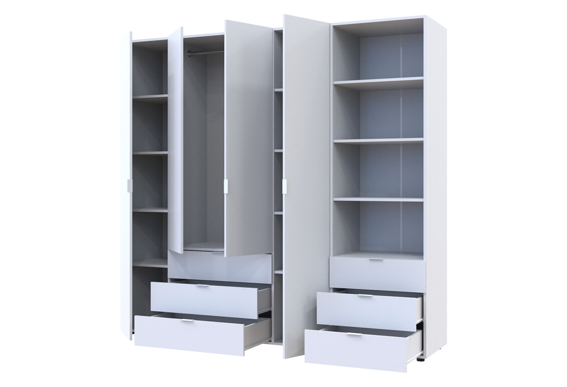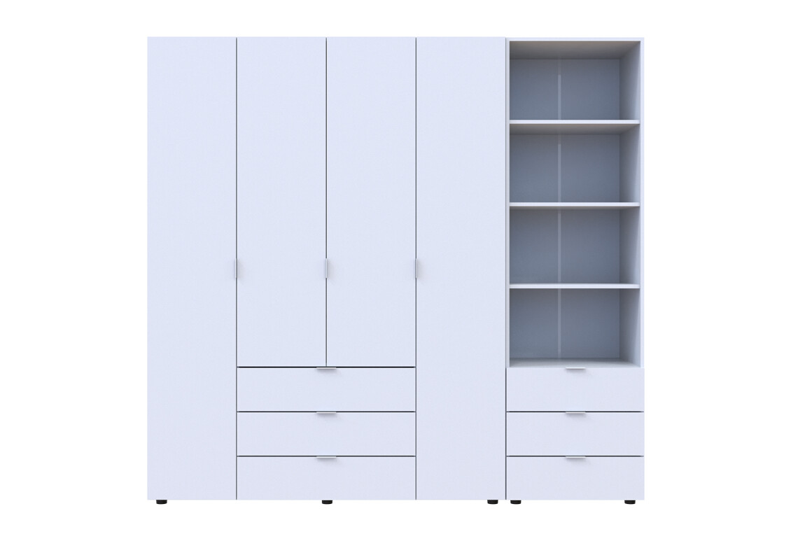Характеристики товара Шкаф Doros Гелар 4 ДСП 4-дверная с ящиками и пеналом с открытыми полками 215 см Белый