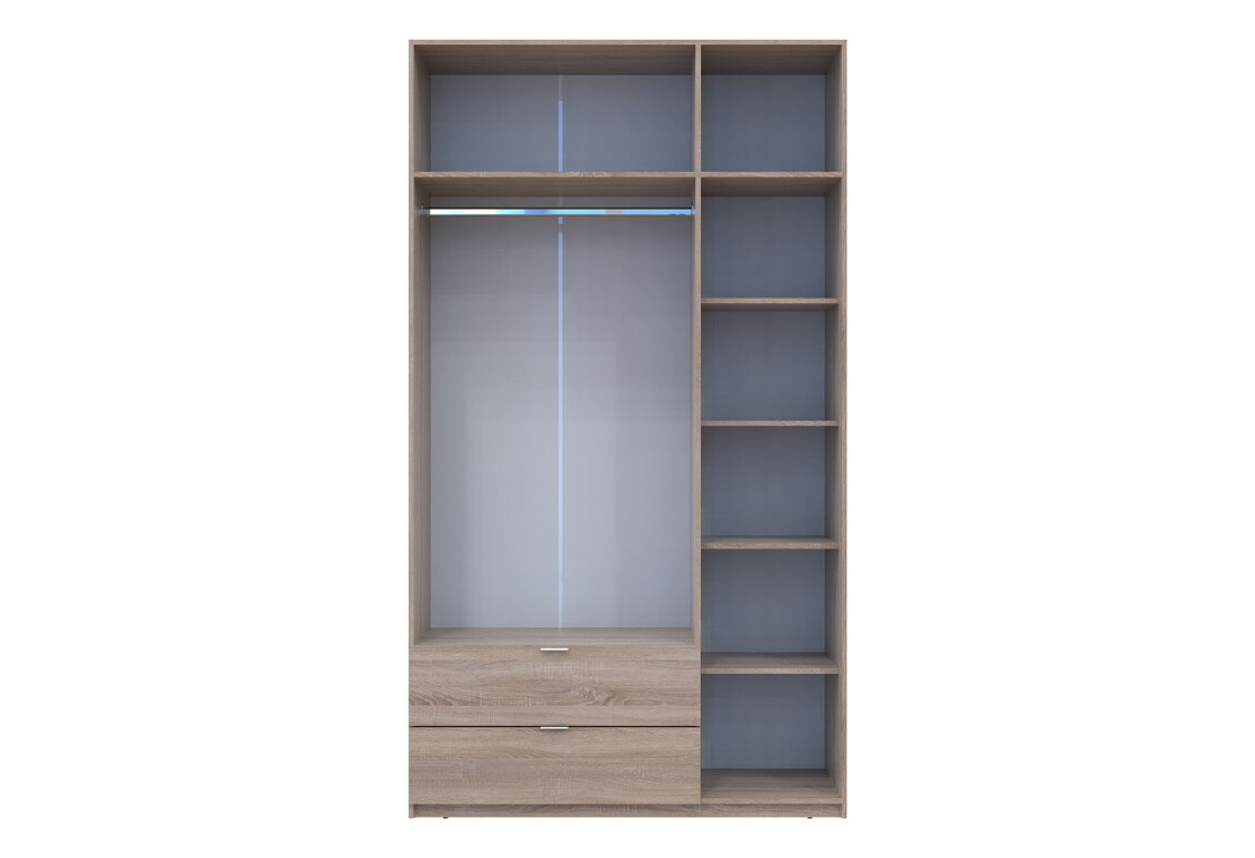 - Наполнение шкафа: штанга, полки и ящики