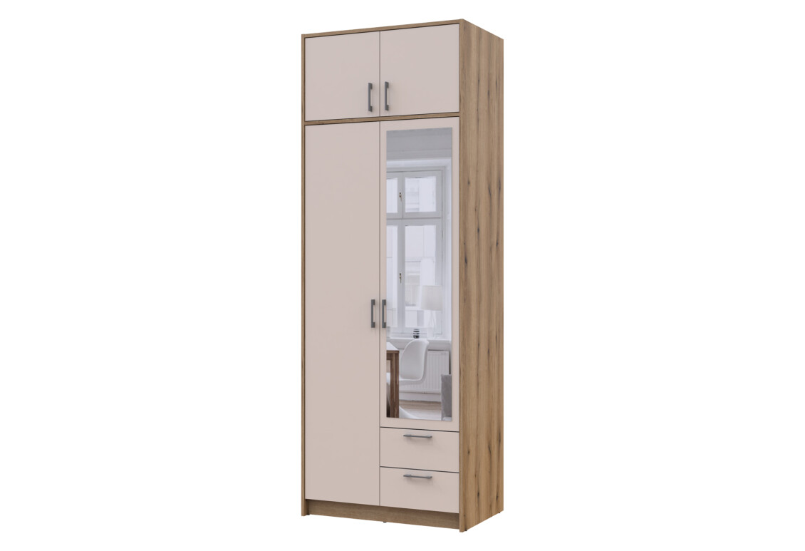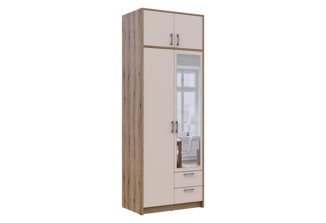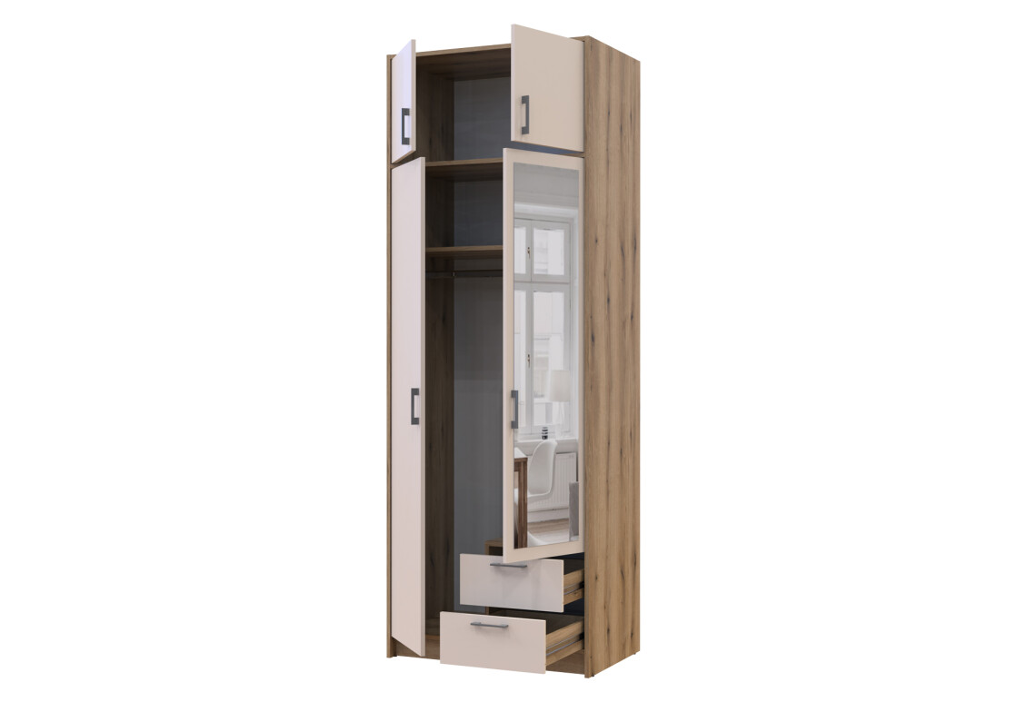 - Шкаф Doros Ронди 2-дверная с зеркалом и 2 ящиками 82 см Дуб Артизан / Кашемир, 1 шт – 82.00 см x 195.00 см x 52.00 см