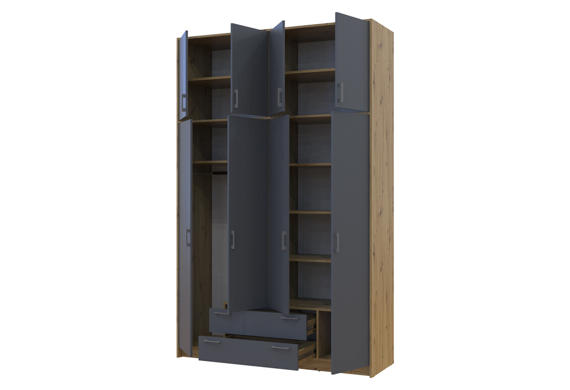 Характеристики товара Шкаф Doros Ронди 4-дверный с высокой антресолью и 2 ящиками 160 см Дуб Артизан / Графит