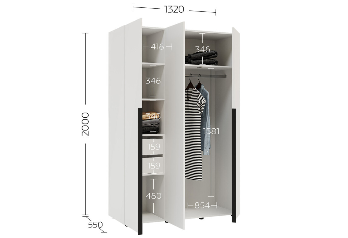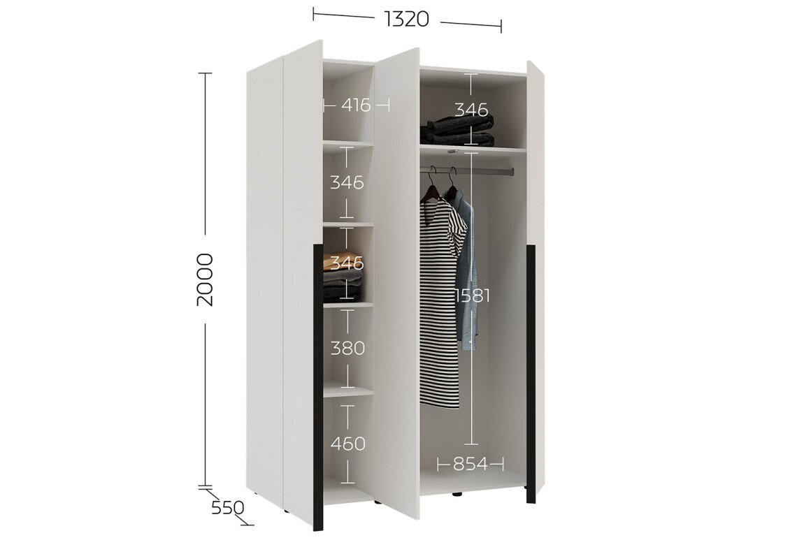 - Размер: ширина - 132.00 см, высота - 200.00 см, глубина - 55.00 см