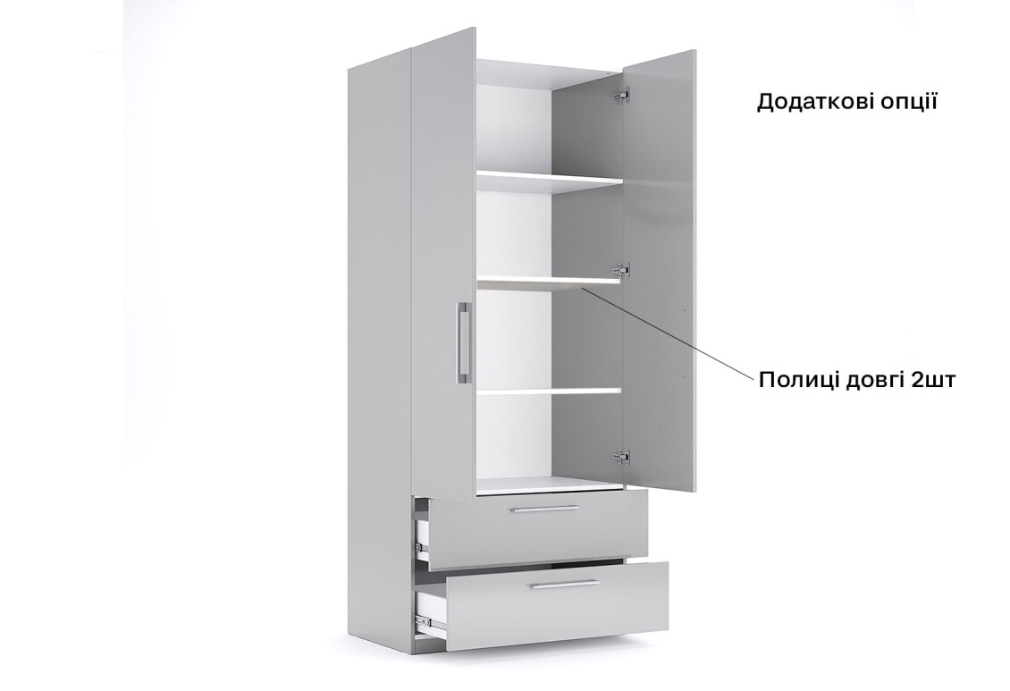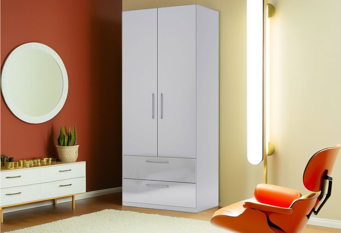 Шкаф МироМарк Меги / Megy – это стильное и функциональное решение для вашего интерьера. С его современным дизайном и глянцевой отделкой в цвете серый шиншилла, этот шкаф станет не только практичным элементом хранения, но и элегантным дополнением вашей спальни. Благодаря двум дверцам и двум ящикам, он предлагает достаточно пространства для организации одежды и аксессуаров. Изготовленный из качественной ламинированной ДСП, шкаф отличается прочностью и долговечностью, а металлические ручки и фурнитура с доводчиками обеспечивают комфортное использование. Размеры шкафа (ширина 89.60 см, высота 210.60 см, глубина 55.00 см) позволяют разместить его даже в ограниченном пространстве, что делает его идеальным выбором для любой квартиры.