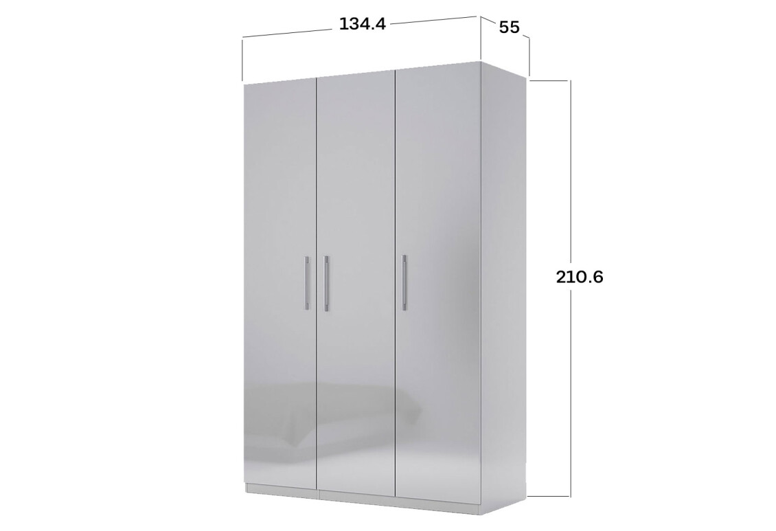 Шкаф МироМарк Меги / Megy — это идеальное решение для тех, кто ценит современный стиль и функциональность. С шириной 134 см, высотой 210 см и глубиной 55 см, этот 3-дверный шкаф станет отличным дополнением вашей спальни, обеспечивая достаточно места для хранения одежды и других вещей. Его глянцевая поверхность в цвете серый шиншилла придаёт интерьеру элегантность, а металлические ручки добавляют нотку современности. Шкаф изготовлен из качественной ламинированной ДСП, что гарантирует его долговечность и устойчивость к повреждениям. Фурнитура с доводчиками обеспечивает плавное и бесшумное закрытие дверей, что делает использование шкафа ещё более комфортным.
