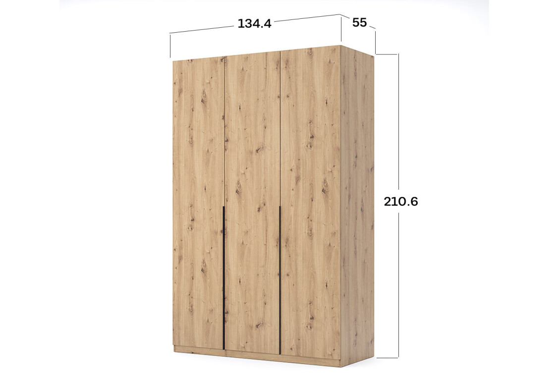 Шкаф МироМарк Тедди 3-дверный без зеркал — это идеальное решение для тех, кто ценит сочетание функциональности, надежности и современного стиля. С шириной 134 см, высотой 210.6 см и глубиной 55 см, этот шкаф отлично впишется в любое пространство, обеспечивая достаточно места для хранения вещей. Изготовленный из качественной ламинированной ДСП, он отличается прочностью и долговечностью, что делает его отличным выбором для повседневного использования. Металлические ручки добавляют шкафу стильный акцент и удобство в эксплуатации. Цвет дуб артизан придаёт мебели элегантный и современный вид, который легко сочетается с другими элементами интерьера.