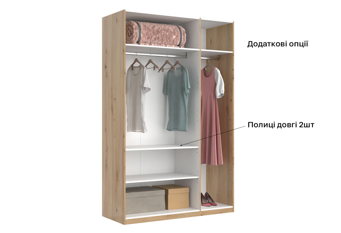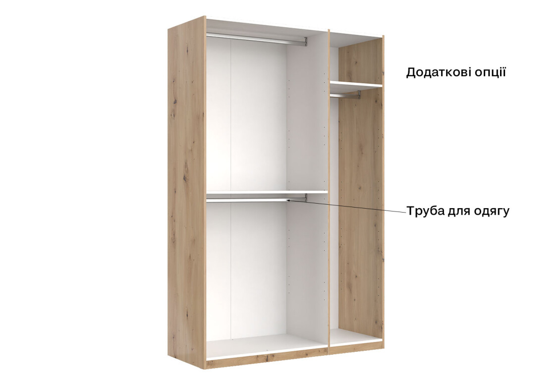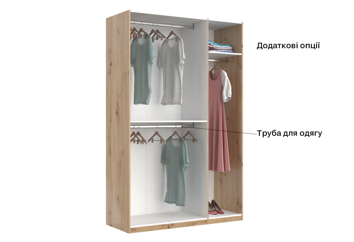 - Наполнение шкафа: штанга, идеальна для хранения одежды на вешалках