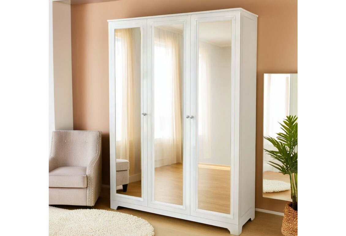 Шкаф Вип-Мастер Мадрид 3-дверный V.1 с зеркалом – это идеальное решение для тех, кто ценит стиль и функциональность в интерьере. С размерами 152 см в ширину, 215 см в высоту и 53,5 см в глубину, этот шкаф станет не только практичным, но и элегантным дополнением вашей спальни. Выполненный в классическом стиле, он сочетает в себе белый цвет и качественные материалы: фасад из стекла и крашеной МДФ, а корпус из ламинированной ДСП гарантирует долговечность и надежность. Металлические ручки добавляют шкафу современный акцент, а зеркало визуально увеличивает пространство и делает комнату более светлой. Этот шкаф подходит как для оптовых, так и для розничных покупателей, что делает его выгодным приобретением для любого бюджета.