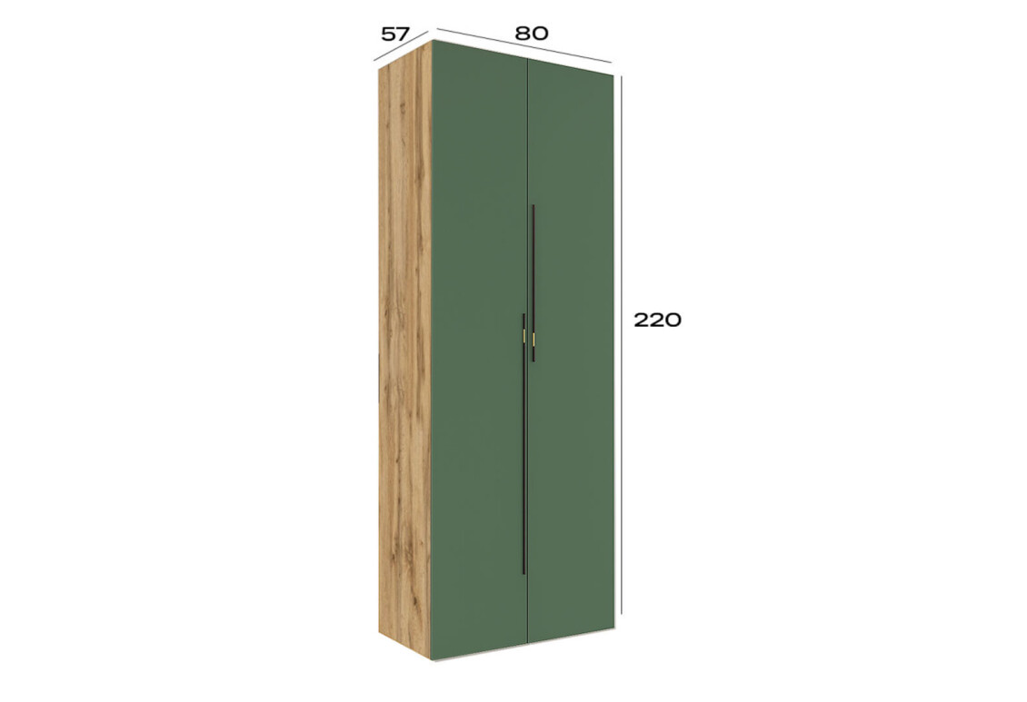 Характеристики товара Шкаф Svit Mebliv Спейс двухдверная со штанкой и полками 80х220х57 см, дуб аппалачи / зеленый дымчатый