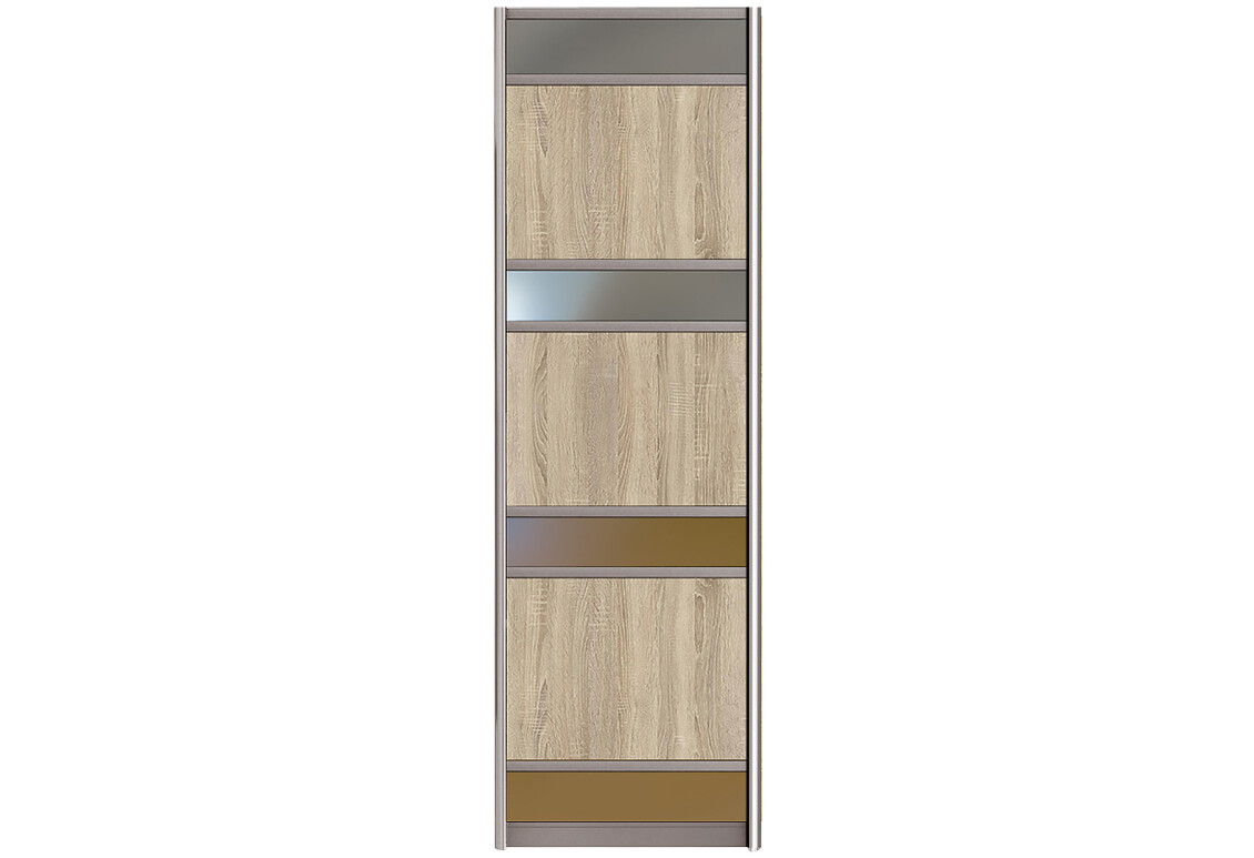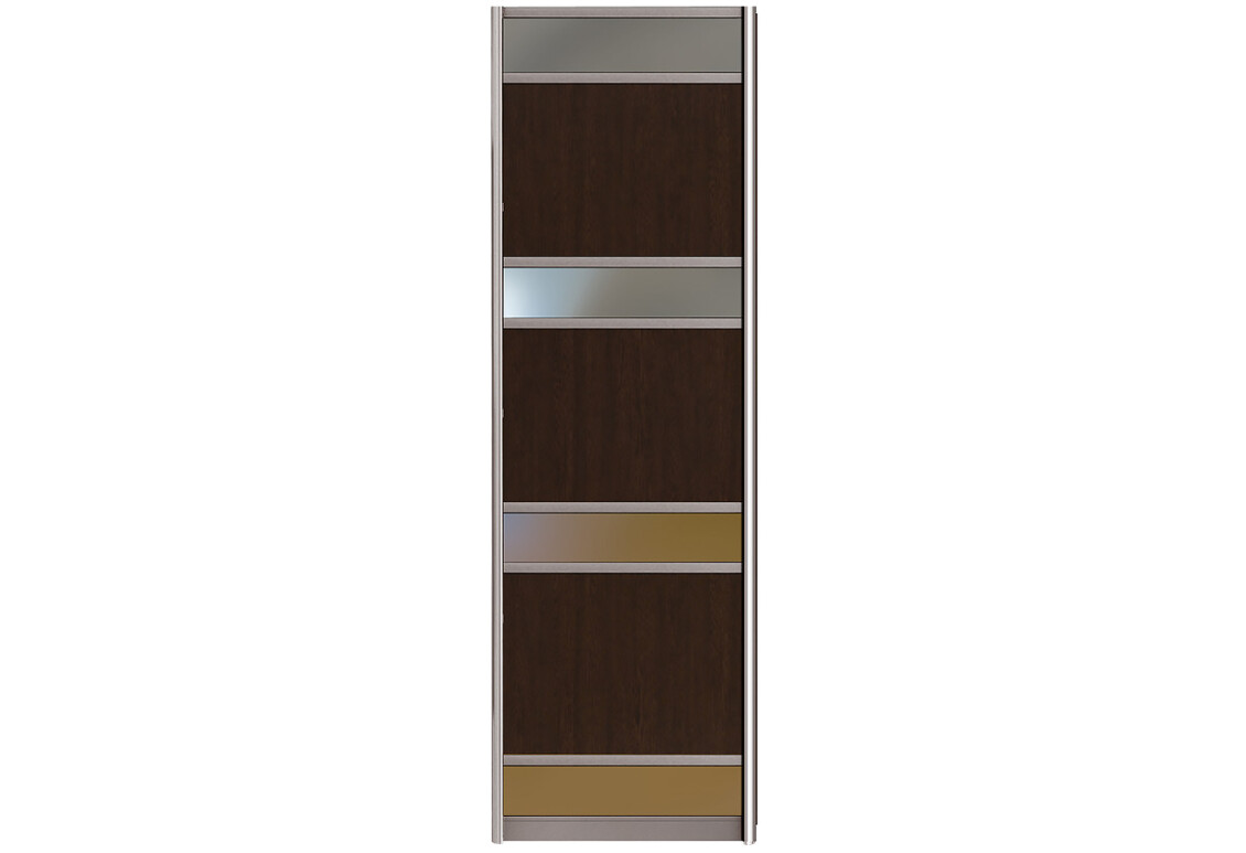 Фасад Комби №7 ДСП с зеркалом 760 – это идеальное решение для вашего шкафа-купе, которое сочетает в себе функциональность и стиль. Изготавливаемый из высококачественного стекла, этот фасад не только придаёт вашему интерьеру современный вид, но и визуально увеличивает пространство, благодаря отражающим свойствам зеркала. Его размеры (ширина 76 см) идеально подходят для стандартных шкафов, а разнообразие доступных модификаций позволяет выбрать именно тот вариант, который наилучшим образом впишется в ваш интерьер. Вы можете выбрать цвет фасада из 17 вариантов, включая дуб молочный, ольха, сонома, яблоня, венге и многие другие. Также доступны различные цвета профиля, такие как золото, венге, шампань и серебро, что позволяет создать уникальный стиль вашего шкафа.