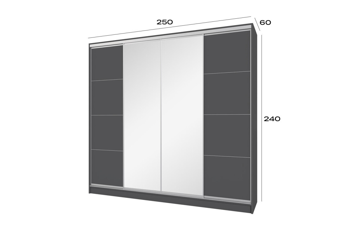 Характеристики товара Шкаф-купе Киевский Стандарт 4Д 2500х2400х600 зеркало + Комб 7_7/9 ДСП, антрацит