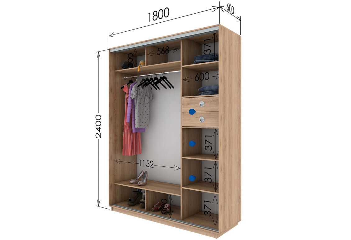 - Размер: ширина - 180 см, высота - 240 см, глубина - 60 см