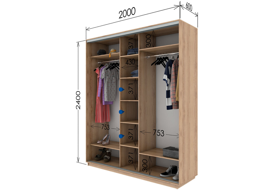 Характеристики товара Шкаф-купе Garant 3-дверный 200x240x60 см