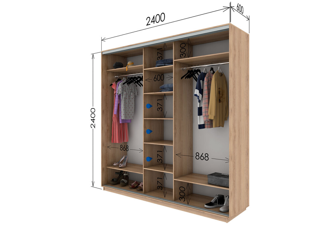 Шкаф-купе Garant 3-дверный – это идеальное решение для тех, кто ценит качество и практичность в интерьере. С размерами 240x240x60 см, этот шкаф станет не только функциональным элементом вашего дома, но и стильным акцентом в любом помещении. Выполненный в современном стиле, он подходит как для жилых, так и для коммерческих помещений, включая отели. Основные особенности шкафа заключаются в его вместительности и продуманной организации пространства: в нем предусмотрены штанга и полки, что позволяет удобно размещать одежду и аксессуары. Шкаф-купе Garant изготавливается из высококачественного ДСП, что обеспечивает долговечность и надежность. Выбор из различных модификаций позволяет каждому клиенту подобрать идеальный вариант, соответствующий его вкусам и потребностям. Доступные цвета профиля включают золото, бронзу, венге глянец, белый глянец, чёрный мат, бавария (чёрный) и серебро. Кроме того, фасады могут быть выполнены как из 3 ДСП, так и в комбинациях с зеркалами, что добавляет визуального пространства и стиля вашему интерьеру. Вы можете выбрать между различными цветами ДСП, такими как орех селект, дуб молочный, бук бавария и многие другие, что позволяет легко интегрировать шкаф в существующий интерьер.
