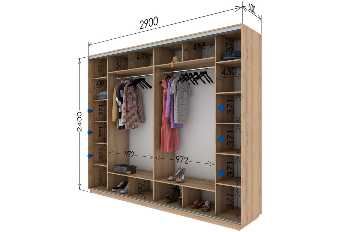 Характеристики товара Шкаф-купе Garant 4-дверный 290x240x60 см