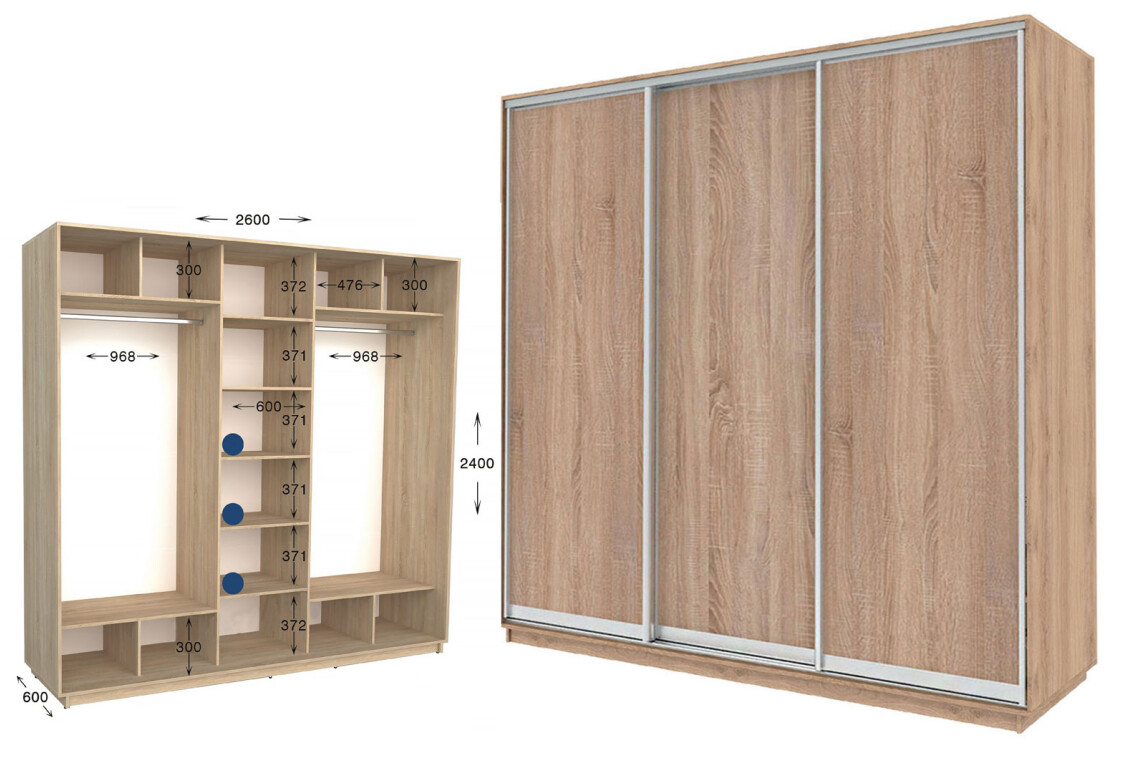 - Доступные модификации: цвет профиля: золото, бронза, венге глянец, белый глянец, чёрный мат, бавария (чёрный), серебро; фасады: 3 ДСП, 1 ДСП 2 Зеркала, 1 ДСП 2 Зеркала бронза, 2 ДСП 1 Зеркало, 2 ДСП 1 Зеркало бронза, 3 Зеркала, 3 Зеркала бронза, 1 ДСП 2 Зеркала графит, 3 Зеркала графит, 2 ДСП 1 Зеркало графит; цвет ДСП: орех селект, дуб молочный, бук бавария, белый диамант, дуб сонома, дуб сонома трюфель, дуб крафт золотой, дуб приморский сатиновый, яблоня локарно, ольха горная темная, венге магия, нимфея альба, индастриал, аляска, ясень снежный, дуб клондайк, дуб корабельный, дуб артизан, артвуд светлый, графит серый, дуб крафт серый, сатин, дуб крафт табако, дуб крафт белый, серая мышка, кашемир.