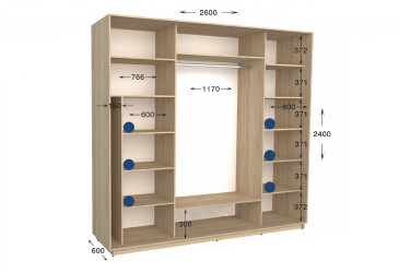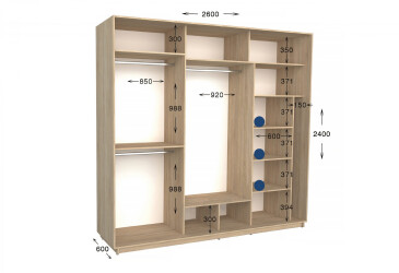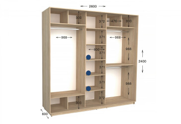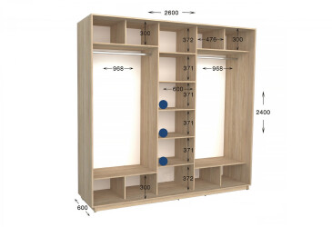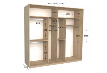 • Размер: ширина - 260 см, высота - 220 см или 240 см, глубина - 450 мм или 600 мм;