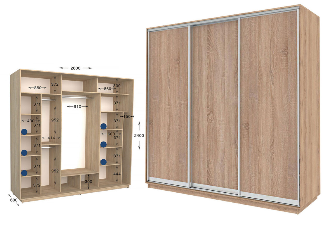 Шкаф-купе Garant 3-дверный 260x240x60 см