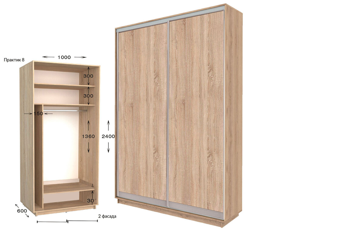 Характеристики товара Шкаф-купе Garant Практик №8 2-дверный 100 см
