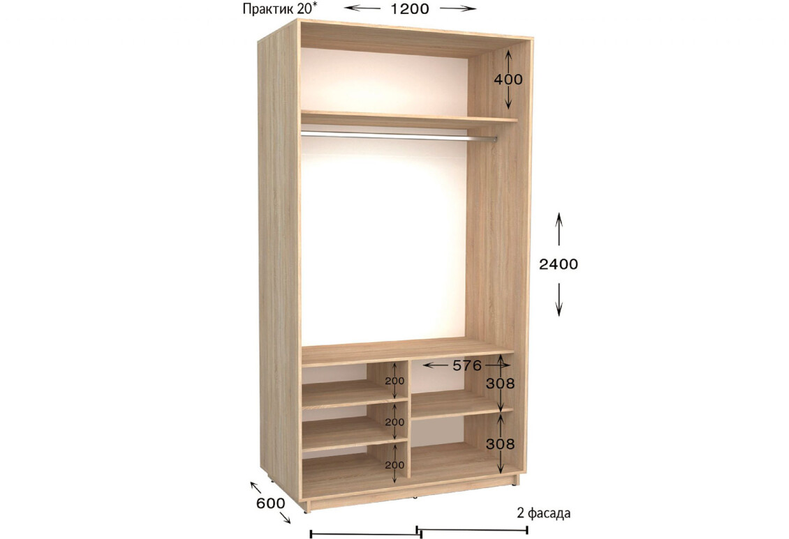 Фото Шкаф-купе Garant Практик №20 2-дверный 120 см Код товара: 88090 Шкаф-купе Garant Практик №20 2-дверный 120 см