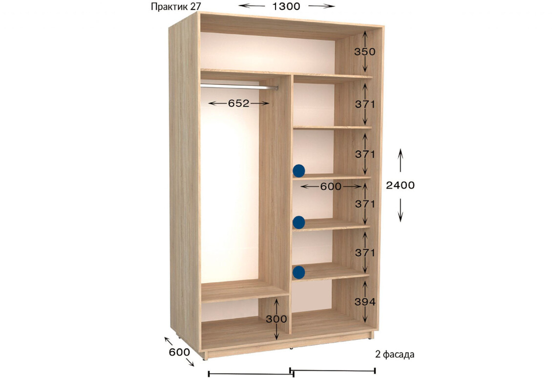 Шкаф-купе Garant Практик №27 – это идеальное решение для вашего интерьера, сочетающее в себе современный стиль и практичность. С шириной 130 см и высотой 220 или 240 см, он станет не только функциональным элементом, но и стильным акцентом в вашем доме или офисе. Этот 2-дверный шкаф-купе выполнен из качественного ДСП, что обеспечивает его долговечность и надежность. Наполнение шкафа включает штангу и полки, что позволяет удобно разместить одежду и аксессуары. Вы можете выбрать из множества доступных модификаций, что делает этот шкаф-купе универсальным выбором для любого интерьера.