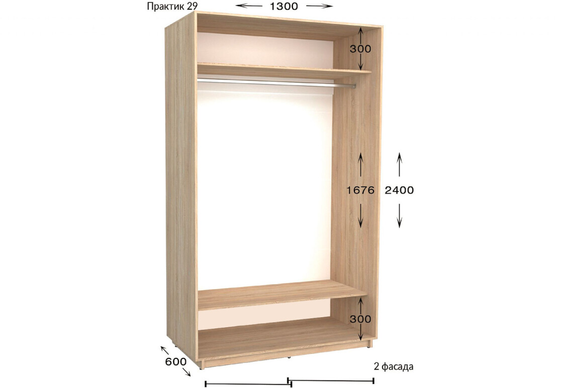 - Размер: ширина – 130 см, высота – 220 см или 240 см, глубина – 450 мм или 600 мм;