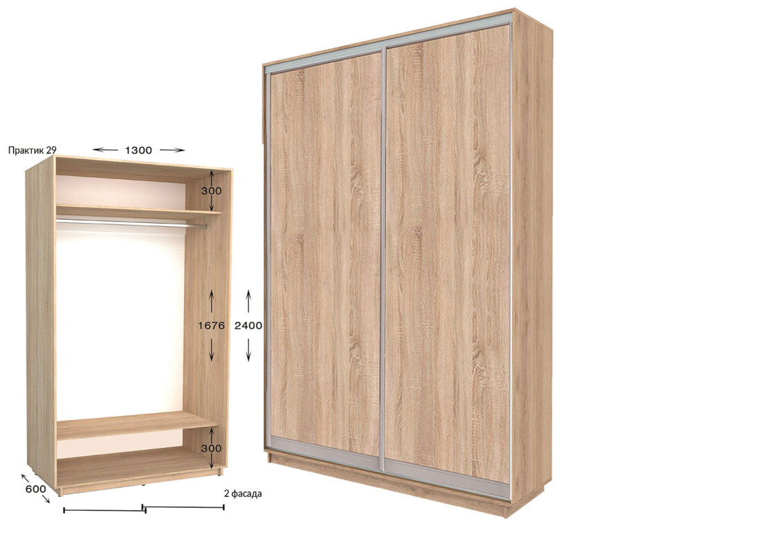 - Тип шкафа-купе: 2D;