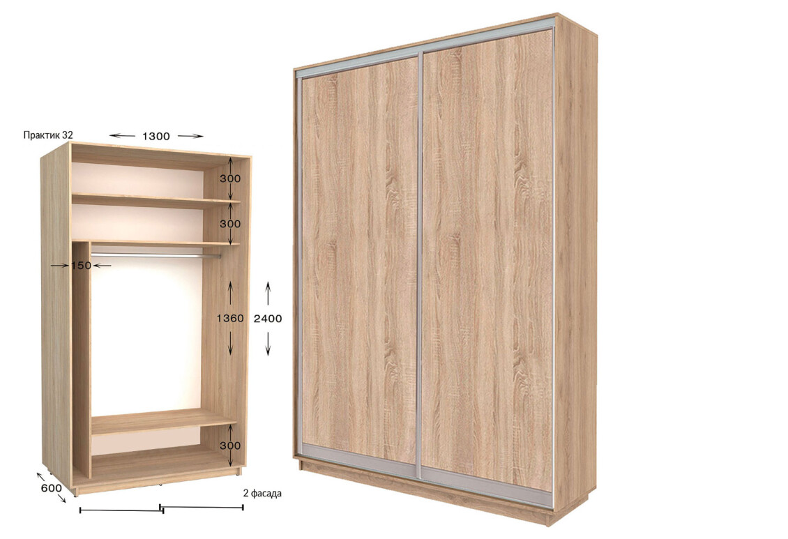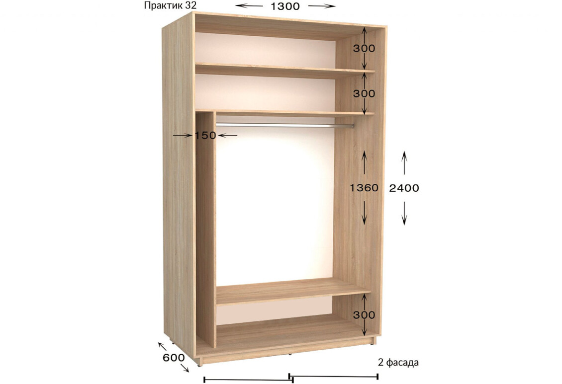 Характеристики товара Шкаф-купе Garant Практик №32 2-дверный 130 см