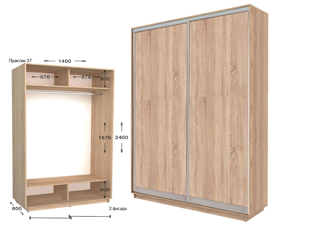 - Размер: ширина - 140 см, высота - 220 см или 240 см, глубина - 450 мм или 600 мм