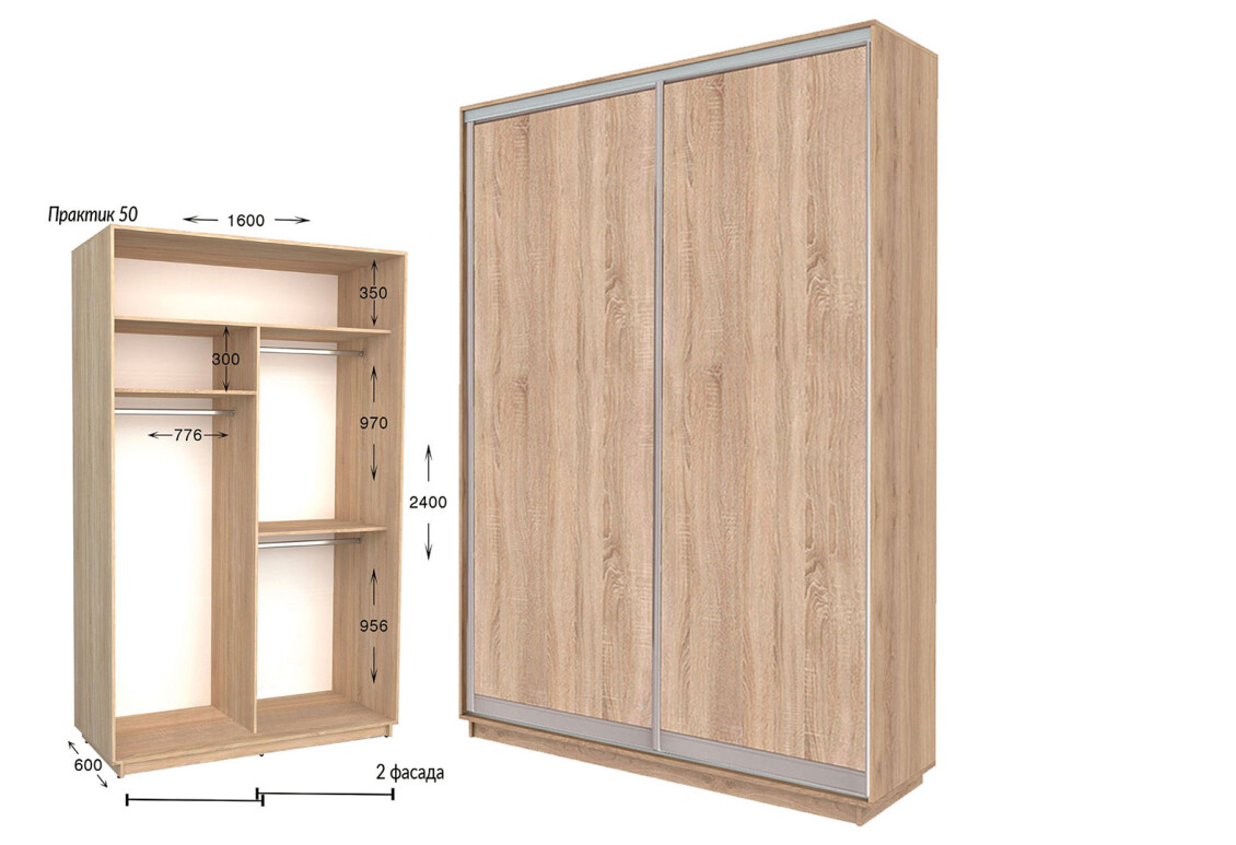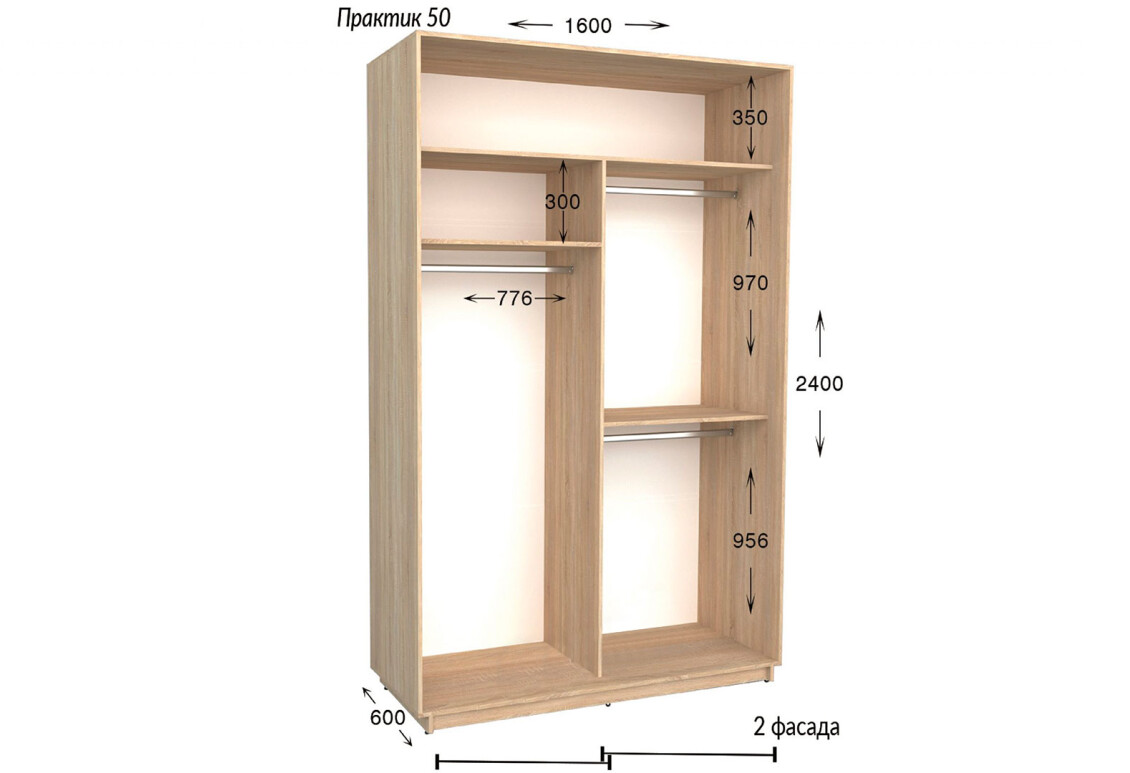 - Размер: ширина 160 см, высота 220 см или 240 см, глубина 450 мм или 600 мм