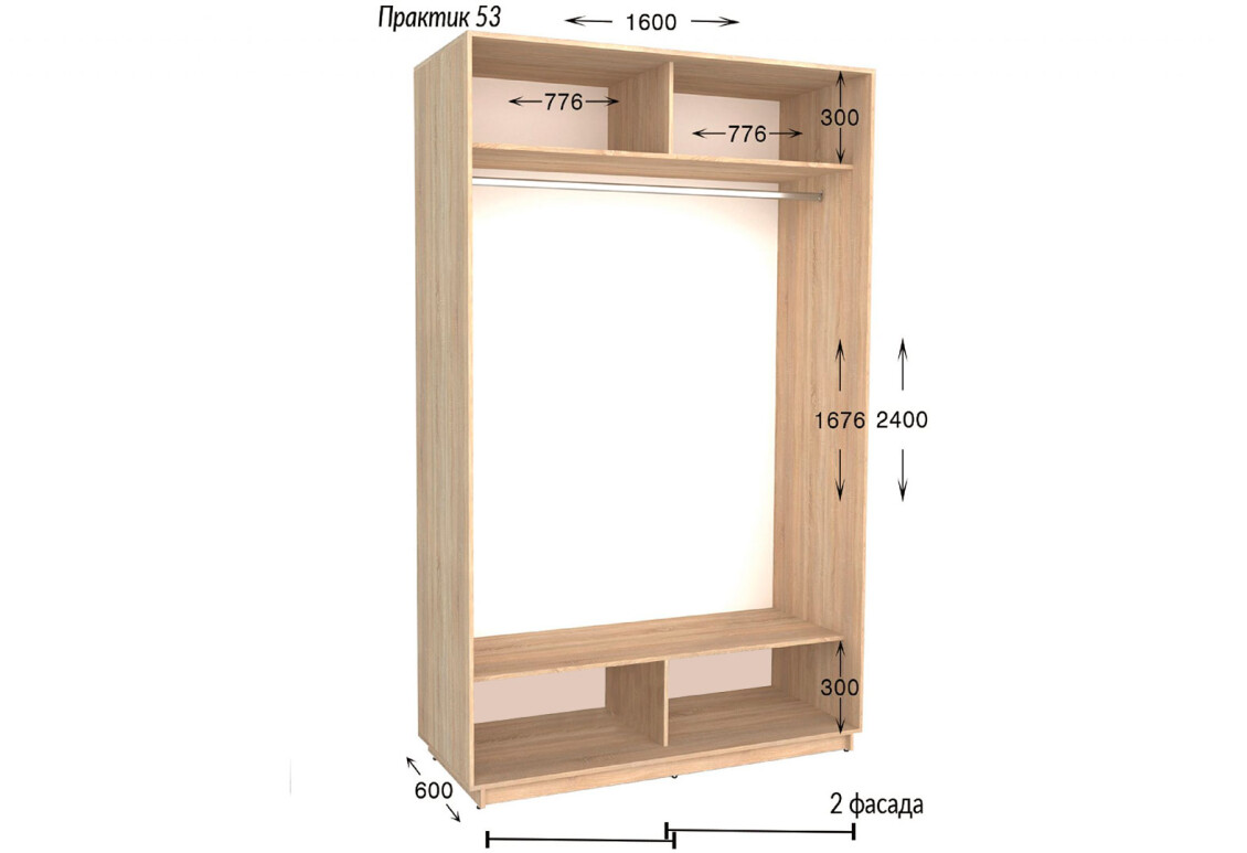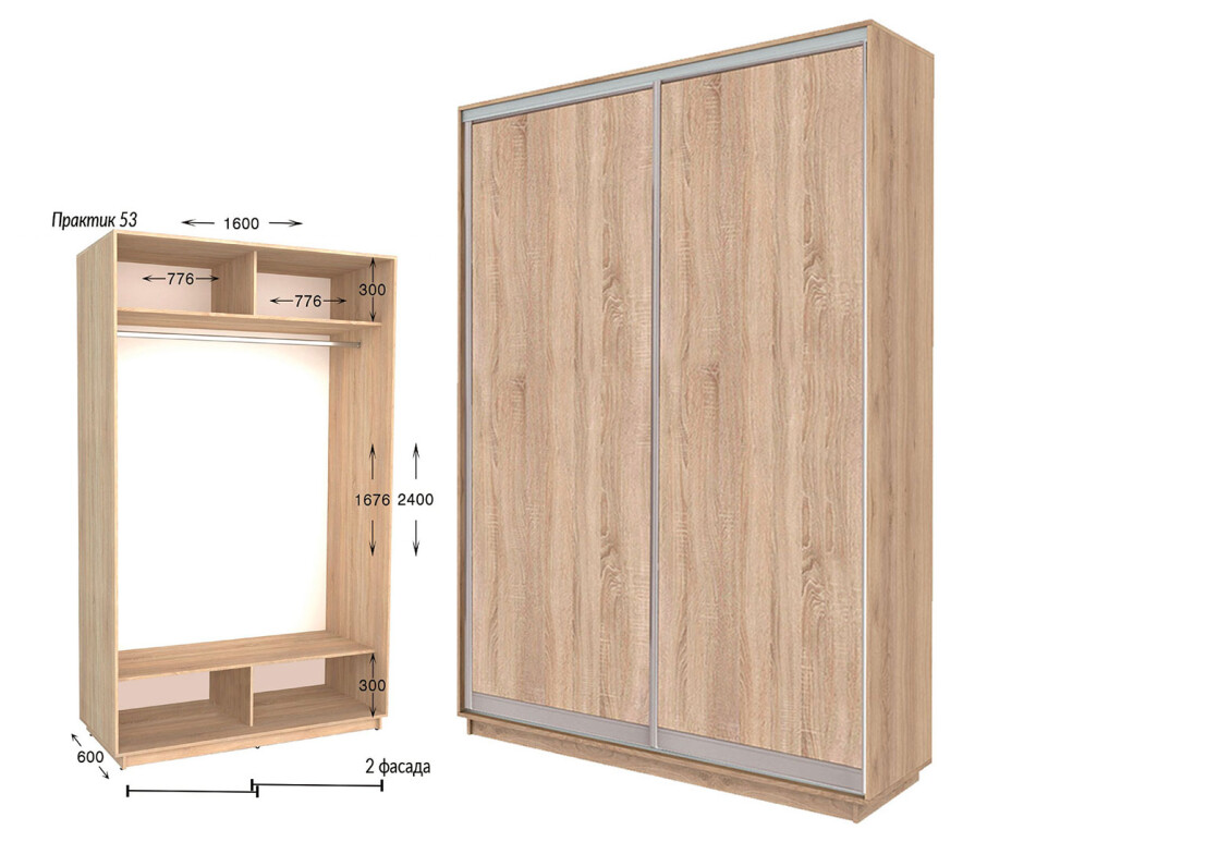 Характеристики товара Шкаф-купе Garant Практик №53 2-дверный 160 см