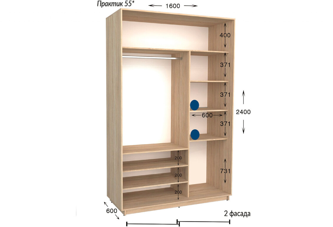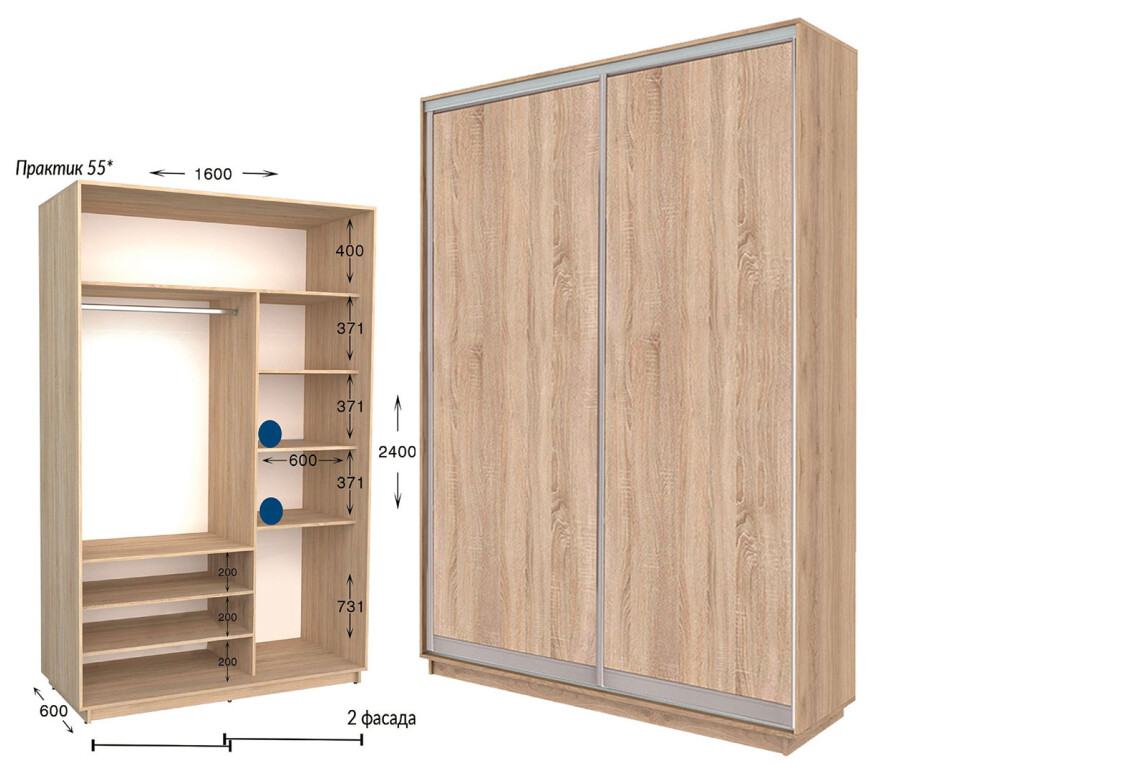Характеристики товара Шкаф-купе Garant Практик №55 2-дверный 160 см