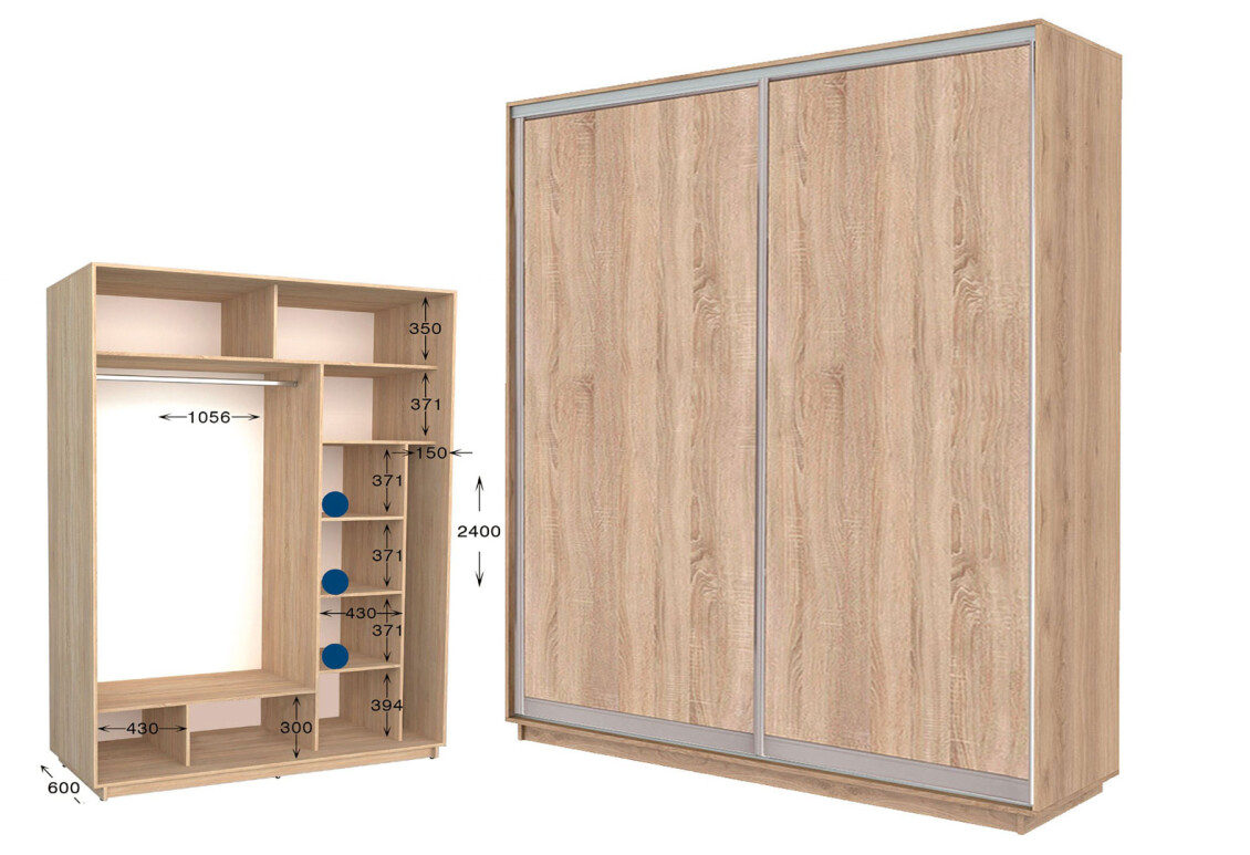 - Размер: ширина - 170 см, высота - 220 см или 240 см, глубина - 450 мм или 600 мм