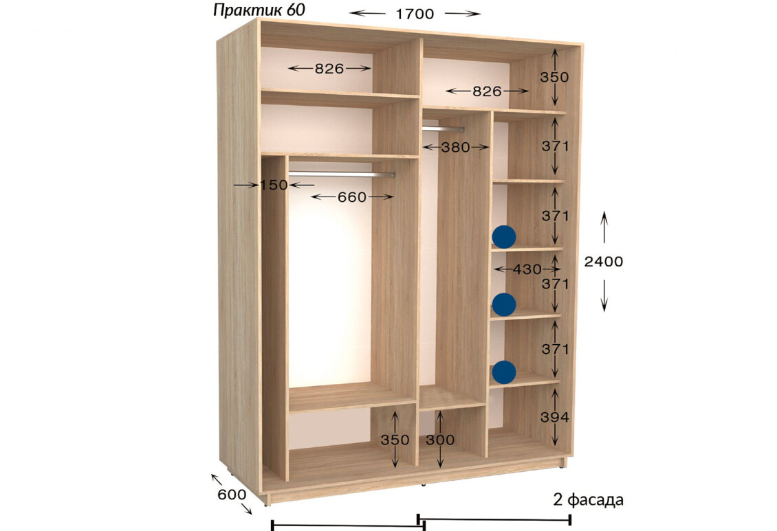 Шкаф-купе Garant Практик №60 является частью модульной системы, которая включает в себя 34 товара различных категорий. Вы можете выбрать как готовые шкафы-купе, так и корпуса шкафов-купе, что позволит вам создать идеальное решение для вашего интерьера. Модульная система дает возможность комбинировать элементы, адаптируя их под ваши нужды и предпочтения, что делает процесс выбора мебели более удобным и эффективным.